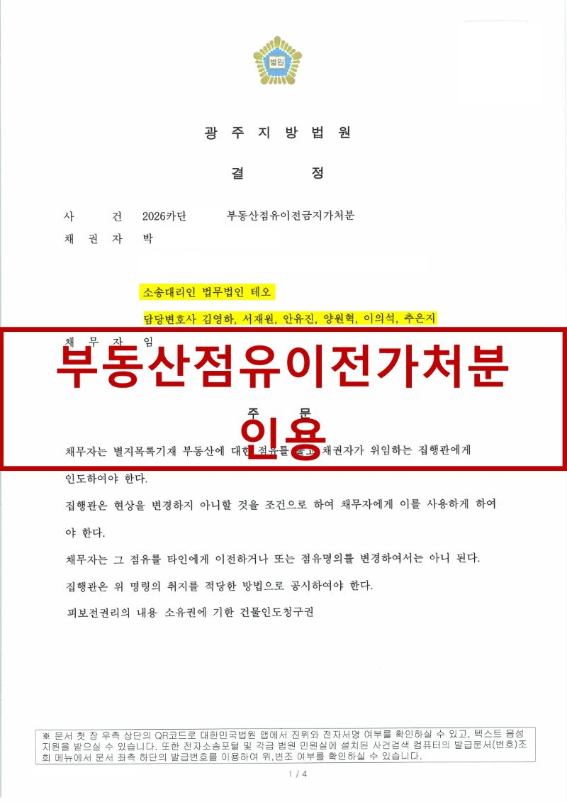 이 결정으로 점유자는 제3자에게 점유를 이전할 수 없게 되었고, 의뢰인은 향후 인도절차를 진행함에 있어 집행 가능성을 안정적으로 확보하게 되었습니다.
