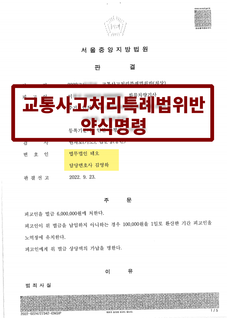 교통사고처리특례법위반 약식명령 판결