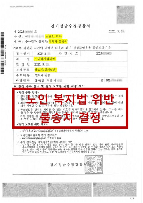 노인복지법위반 불송치 결정
