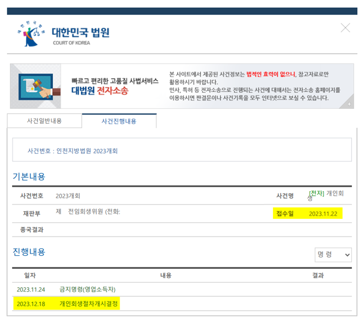 단 1회의 보정서 제출로 개인회생신청서 접수 1개월도 되지 않은 시점 개시결정을 받을 수 있었습니다.